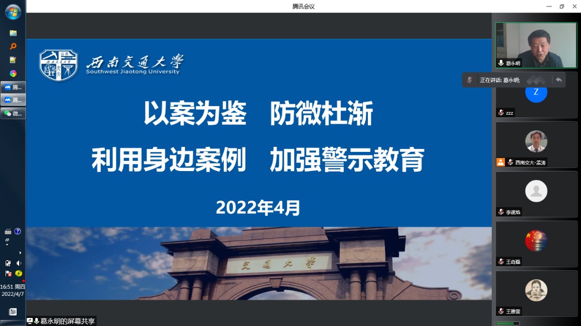 2022-04-112022年4月7日,91视频 生物工程系教工党支部在线上开展师德师风警示教育活动,学院党委书记葛永明参加并开展了“以案为例,...