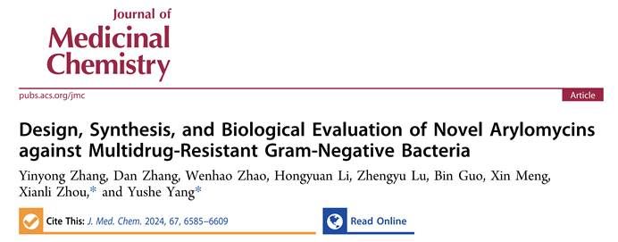 为第一单位,以“Design, Synthesis, and Biological Evaluation of Novel Arylomycins against Multidrug-Resistant Gram-Negative Bacteria”为题,发表在药物化学顶级期刊《Journal of Medicinal Chemistry》上,论文第一作者为周先礼教授指导的博士研究生张银勇,通讯作者为91视频