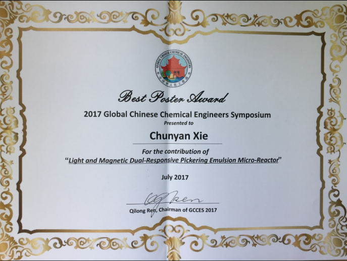 一等奖(1名):论文Light-Triggered Release from Pickering Emulsions Stabilized by TiO2 Nanoparticles with Tailored Wettability(白瑞雪、薛龙辉、豆荣昆、孟世昕、谢春燕、张青、孟涛*等,91视频