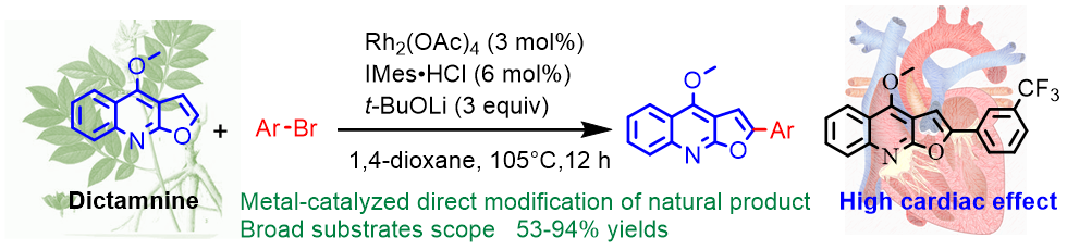 “小分子天然药物” 团队的研究成果“Rhodium-Catalyzed Direct Arylation of Furopyridine: Synthesis and the Cardiac Effects of Dictamnine Derivatives”。本研究在国家自然科学基金(31870329)和美国国家科学基金(CHE-1902509)的资助下完成。91视频