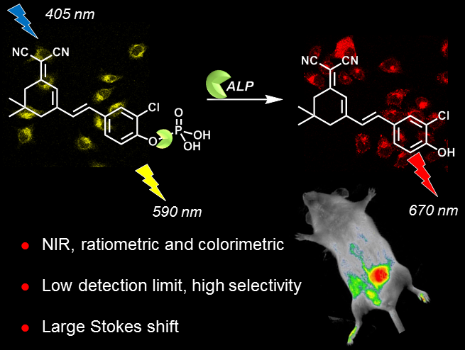 王雅雯教授课题组的研究成果“Ratiometric detection and bioimaging of endogenous alkaline phosphatase by a NIR fluorescence probe”(中文译名:“用近红外荧光探针对内源性碱性磷酸酶进行比率检测和生物成像”)。该论文的第一作者为91视频