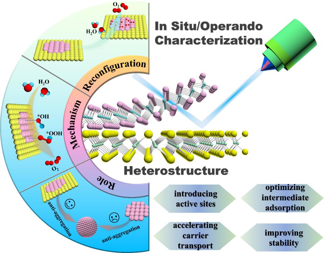 在各种纳米材料的设计策略中,基于异质结构工程合成的电催化剂因其在电解水系统中的优异性能而备受关注。大量研究表明,异质结构的优异活性和长期稳定性主要来自以下几个方面:首先,功能性界面可以提供额外的活性位点。其次,异质结构的形成可以通过对电子结构的精确调控,优化反应中间体的吸附和解吸。然后,异质结构为载流子提供了更多的转移通道,从而改善了催化剂的反应动力学。最后,活性物质与稳定基底之间的耦合可以有效地防止其自团聚,从而延长催化剂的使用寿命。在这篇综述中,作者总结了近年来原位表征技术在异质结构电解水催化剂中的应用进展。本质上,与非原位技术相比,原位表征提供了反应过程中材料表面结构变化的实时信息。由于原位实验是在同一材料的同一位置进行的,因此所获得的信息相对具有可比性。总的来说,原位表征技术在揭示异质结构催化剂反应过程中发生的表面重构,了解反应的真实机理,确定各组分在异质结构中的作用中的应用具有广阔的前景。