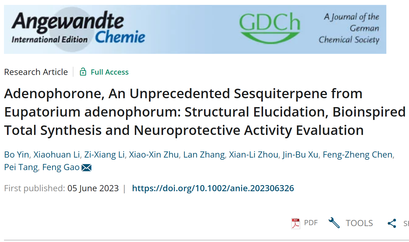 高峰课题组近日在化学类顶级期刊Angewandte Chemie International Edition上在线发表研究论文,报道了一个全新骨架倍半萜的分离鉴定、仿生全合成及神经保护活性。