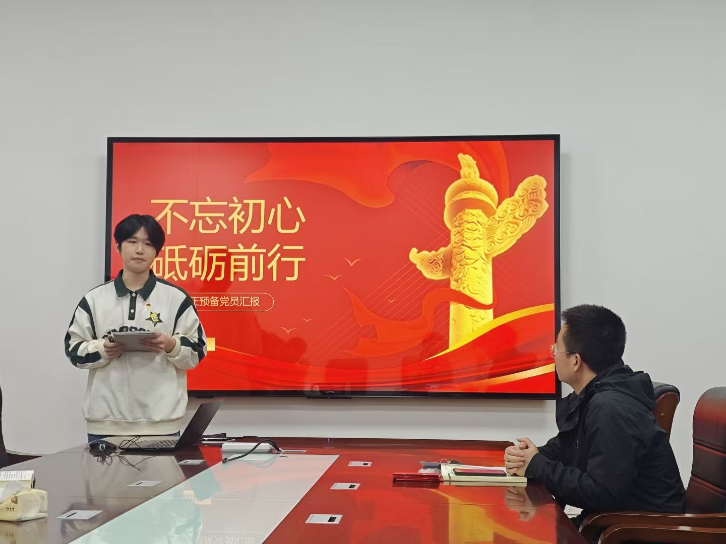 在预备党员接收环节,9 名发展对象依次汇报入党动机、个人履历及思想学习实践表现,入党介绍人详细说明培养考察情况,支委会报告政审结果。与会党员进行民主评议,经无记名投票表决,全体党员一致同意,完成预备党员接收。在预备党员转正审议环节,4名同志依次宣读转正申请,详细汇报预备期内的思想、学习与实践表现。随后,入党介绍人介绍其培养考察情况,与会党员进行民主评议。经无记名投票表决,全体党员一致同意4名同志按期转为正式党员。