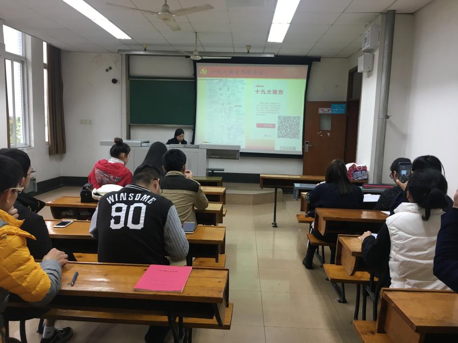15级硕士2班党支部在九里校区4419教室开展了“十九大”精神专题学习会,会议由党支部书记徐瑶主持,支部全体党员和入党积极分子参加了学习。