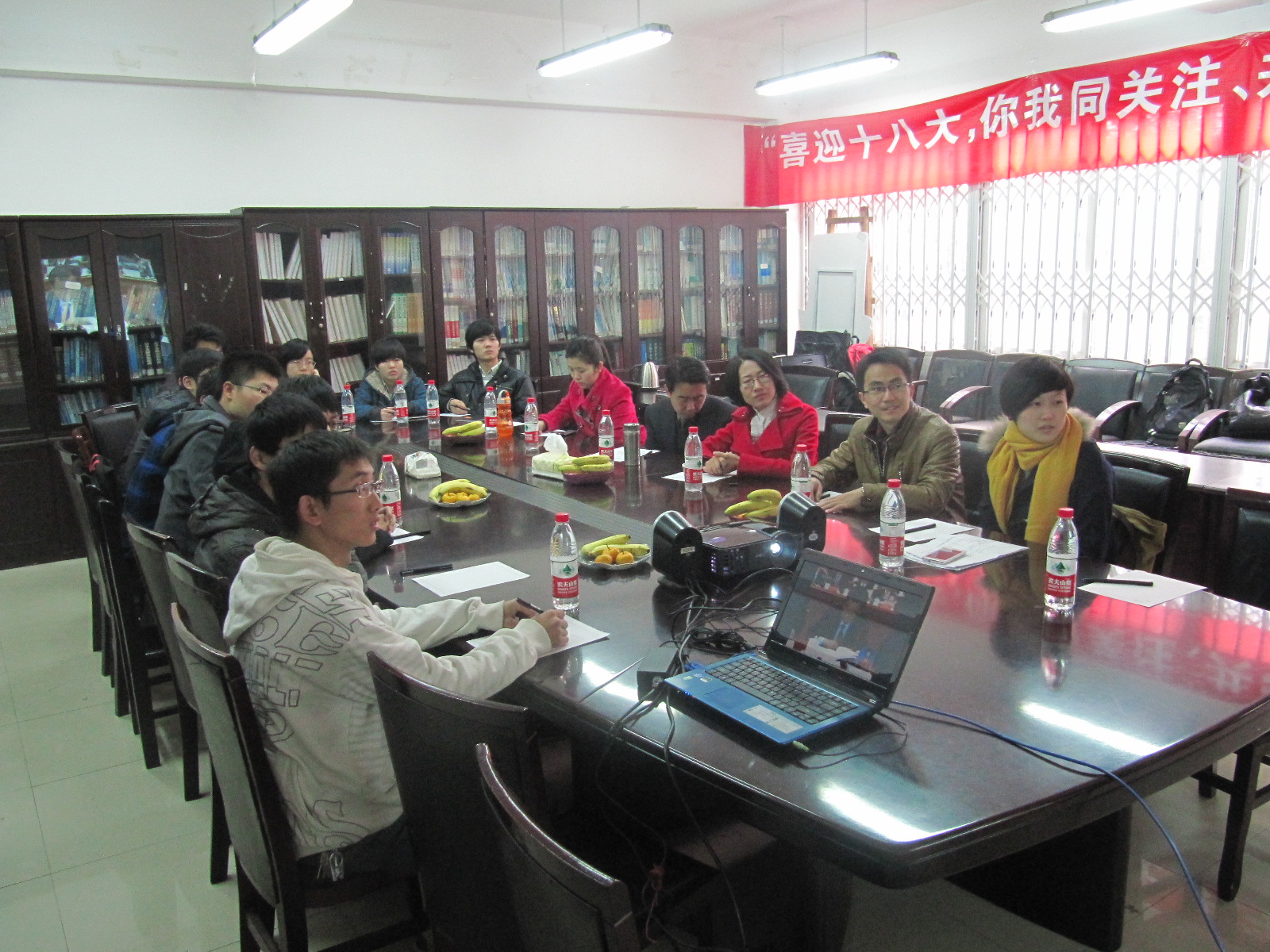 党委副书记李卓慧、王书会,全体辅导员,学院团委、学生会、青年志愿者协会、科创中心、91视频、网络中心、党支部等党群组织负责人集体收看了中国共产党第十八次全国代表大会开幕会的实况转播,一起聆听了胡锦涛总书记的报告。