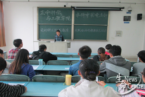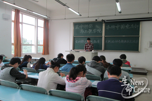 首先,主持人简要介绍活动主要内容。紧接着会议进入“学习”阶段,由本科中药党支部组织委员吴波带领大家学习习近平总书记6月18日在群众路线教育实践活动工作会议上的讲话,她还结合实际情况具体阐述对习近平总书记所讲话语的理解。接着,由宣传委员组织现场人员学习在直属高校“四风”问题的具体表现。