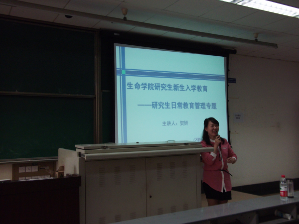 研究生辅导员贺妍老师则主讲了研究生日常教育管理。她首先对研究生教育管理的机构和人员进行了介绍,并主要就我校研究生培养管理机制、研究生激励和资助机制、研究生学术行为监管机制、研究生安全管理机制和研究生处分及申诉机制进行了全面讲解。贺妍老师引用了大量生动的事例,还对同学们关心的事宜和常见的问题进行了解答和释疑,获得同学们的一致赞可。最后贺妍老师向广大新生表达了美好的祝愿,希望大家能珍惜青春岁月,立志高远、脚踏实地,圆满完成学业,平安快乐地渡过研究生阶段。