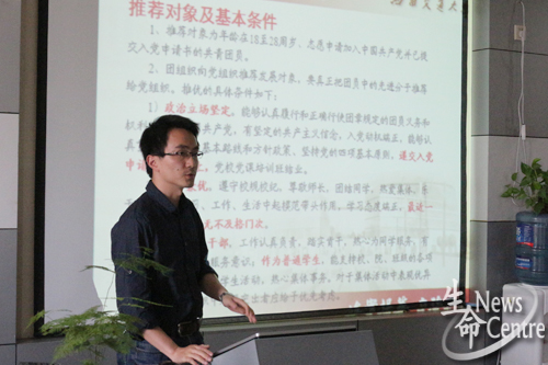 会议主要进行了基层党务工作培训,包括本科生信第二党支部书记曹楠普分享介绍的党员发展流程、学院团委书记崔健讲解的团支部推优工作程序和党委秘书贺妍老师进行的入党材料填写规范等内容。随后,各党支部书记还就近期开展的各项工作和问题进行了交流。最后,罗妍妍副书记向与会同志传达了《关于在大学生中培育和践行社会主义核心价值观的指导意见》,并对基层党支部工作进行了指导。