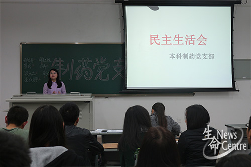 本科制药党支部在X9404召开了一次民主生活会。首先,制药党支部书记洪羚宣布本学期民主生活会正式开始,她鼓励大家畅所欲言,积极主动地分享生活中的见闻趣事,促进党员内部各方面的交流。
