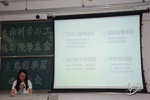魏源成致简单开场白的后,竞选正式开始。公关部部长徐悦首先进行了精彩答辩。紧接着,文艺部部长张孟钧从工作经历、工作总结、部门认知、部门规划四个方面进行了演讲,随后是嘉宾的提问环节。接着,体育部部长蔡熠伟和办公室主任李思远依次进行答辩。最后,进行公开唱票。投票结果为:主席中张孟钧以24票领先,副主席竞选中其他三位同学票数相差不大,最后会根据本次投票及平时分的累加将结果于一周内公布到扬华素质网与学院院网上。