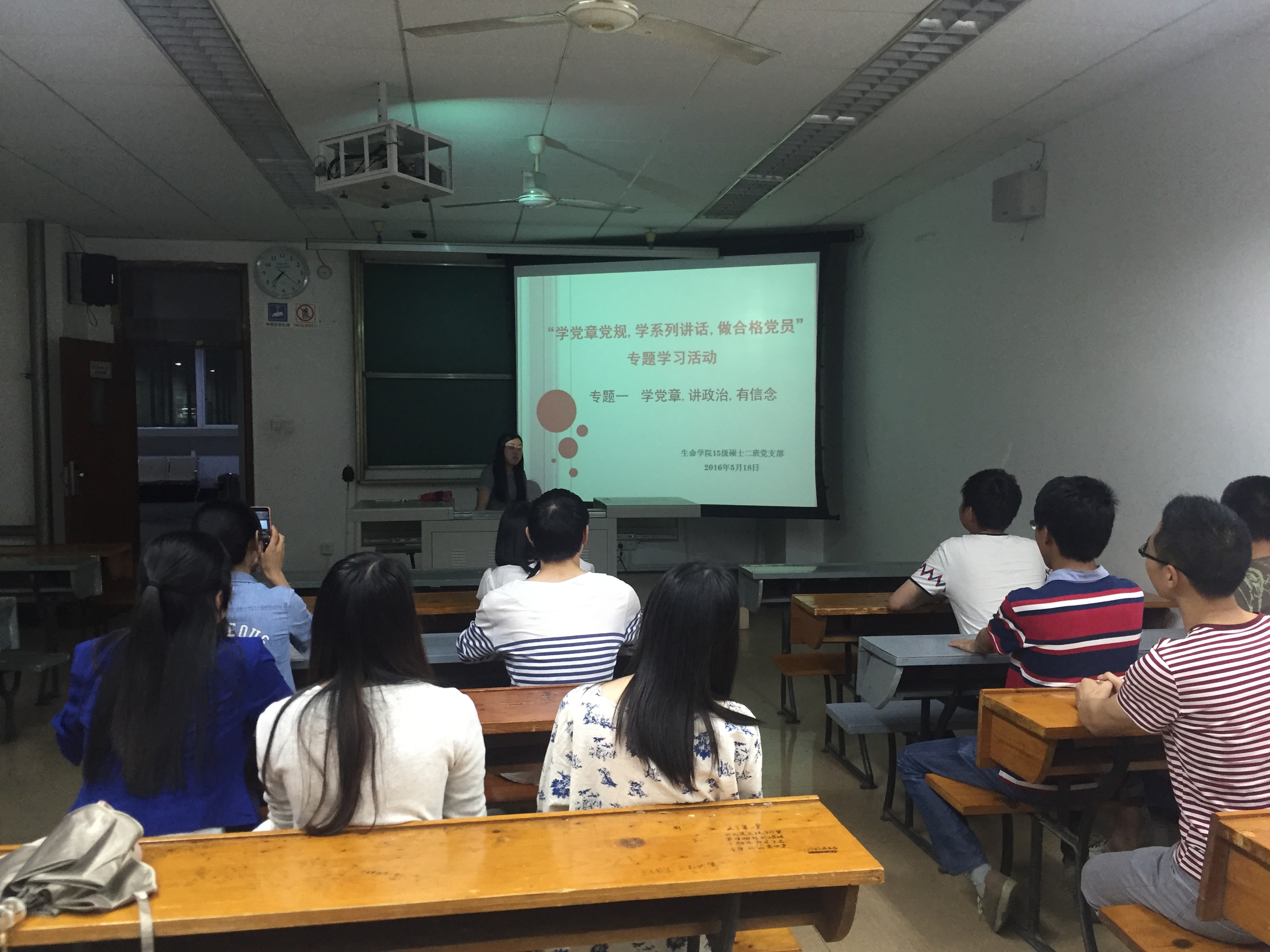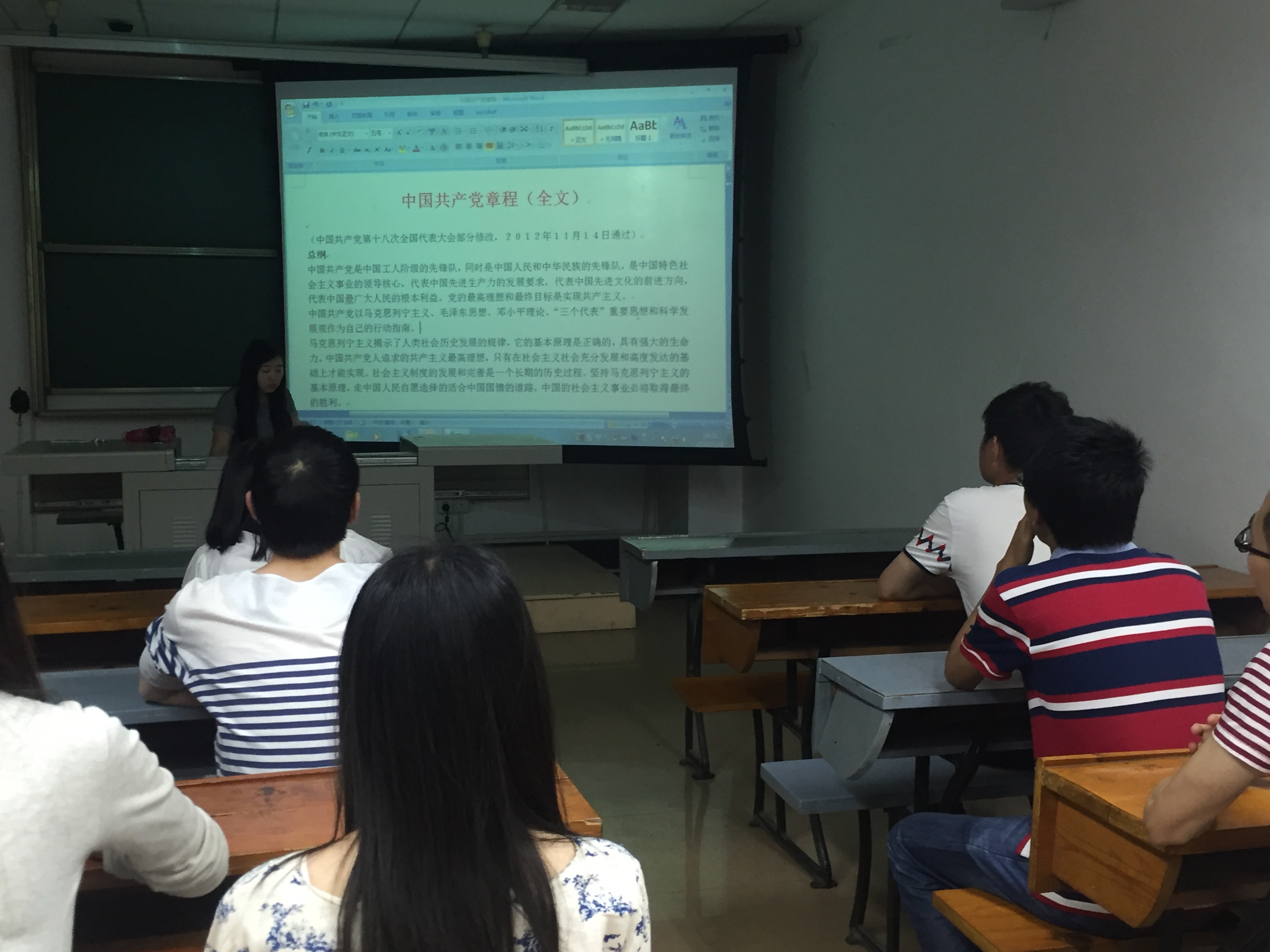 15级硕士1班、2班党支部于逸夫馆4305B召开“学党章,讲政治、有信念”专题学习会,两个支部的全体党员参加了会议。