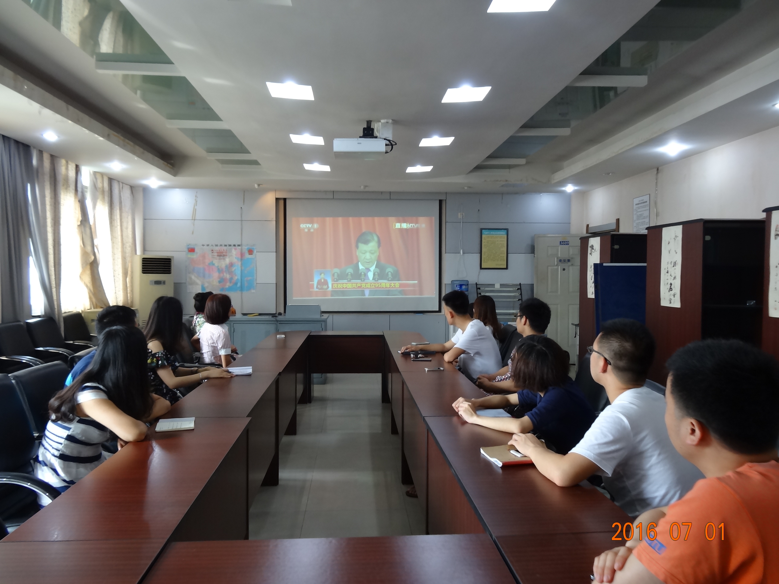 为迎接建党95周年,按校党委统一部署,7月1日上午,91视频 党委组织学院党员干部、师生代表在3609集体观看了中国共产党成立95周年大会现场直播视频。学院党委书记李卓慧、党委委员贺妍、办公室主任陈琳、研究生党支部书记吴润、李祯、本科生党支部书记黄国强,以及师生代表20余人观看了视频。与此同时,学院师生党员还通过网络形式,在办公室、实验室、宿舍等地收听收看了直播。