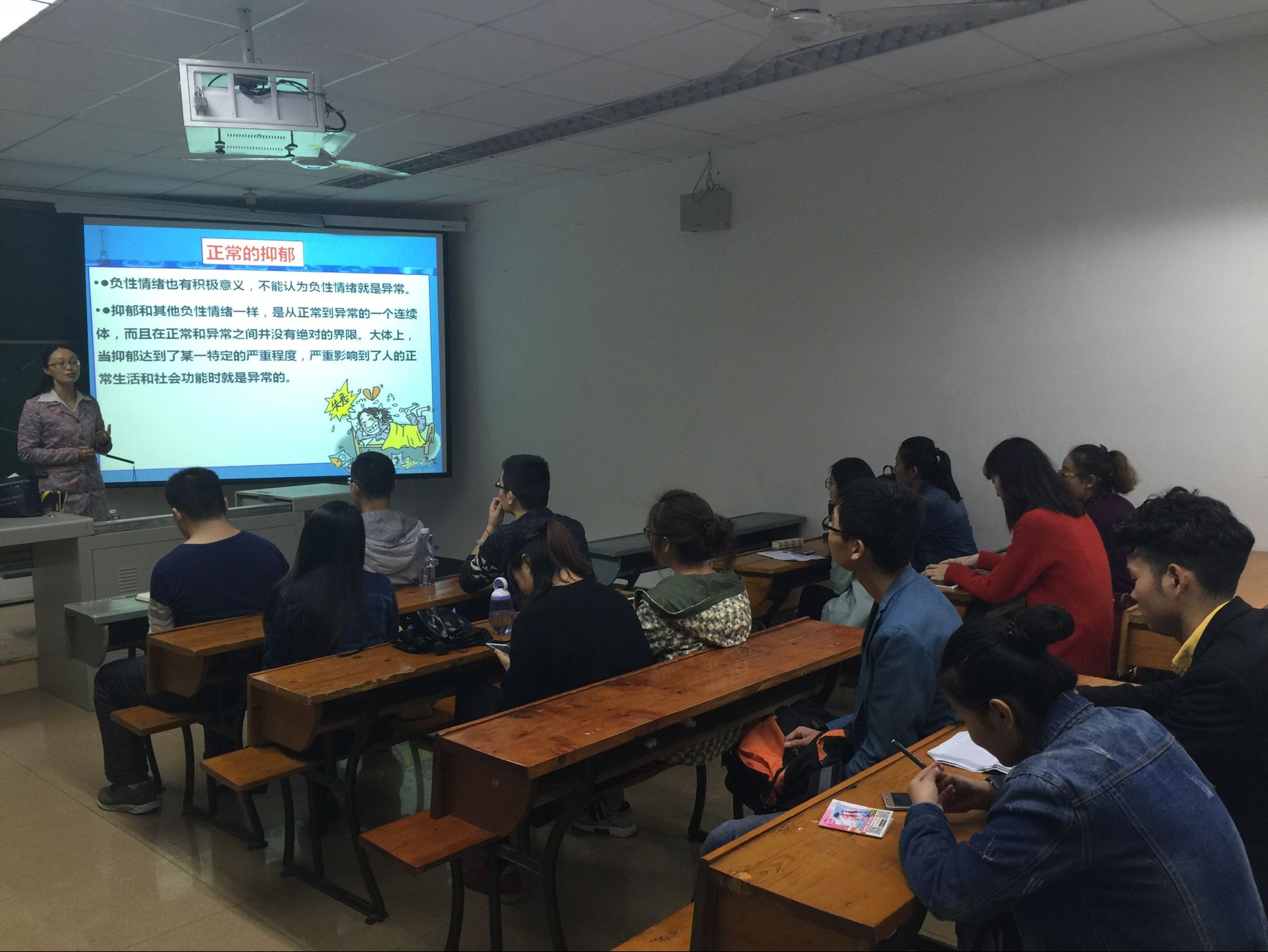 研究生16-1、16-2党支部联合举办的校级党支部示范活动——“牵手阳光,共促成长“心理健康系列活动之主题讲座在4305B进行。此次讲座邀请到心理咨询中心唐静老师进行主讲,支部全体党员和积极分子参加了讲座。