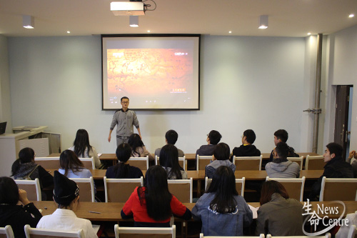 组织全体本科及研究生党员发展对象在X6502观看由中央电视台播出的《纪念红军长征胜利80周年文艺晚会》,到场的有团委副书记孔琳。