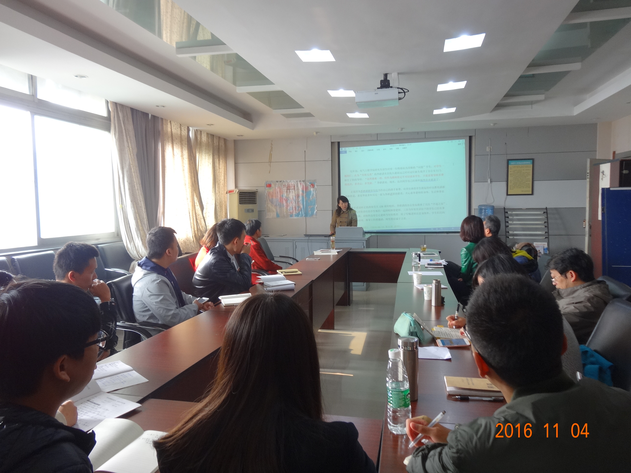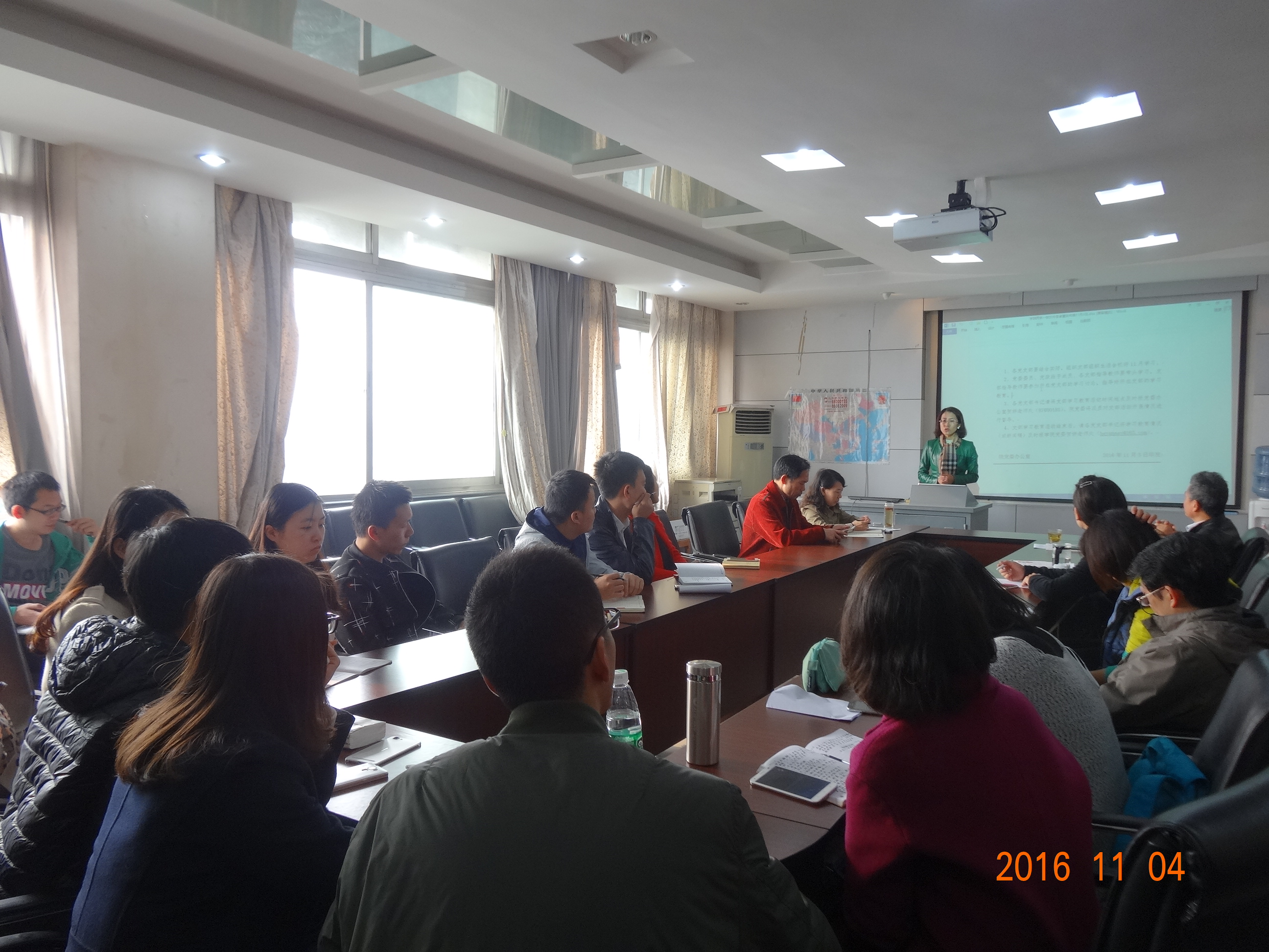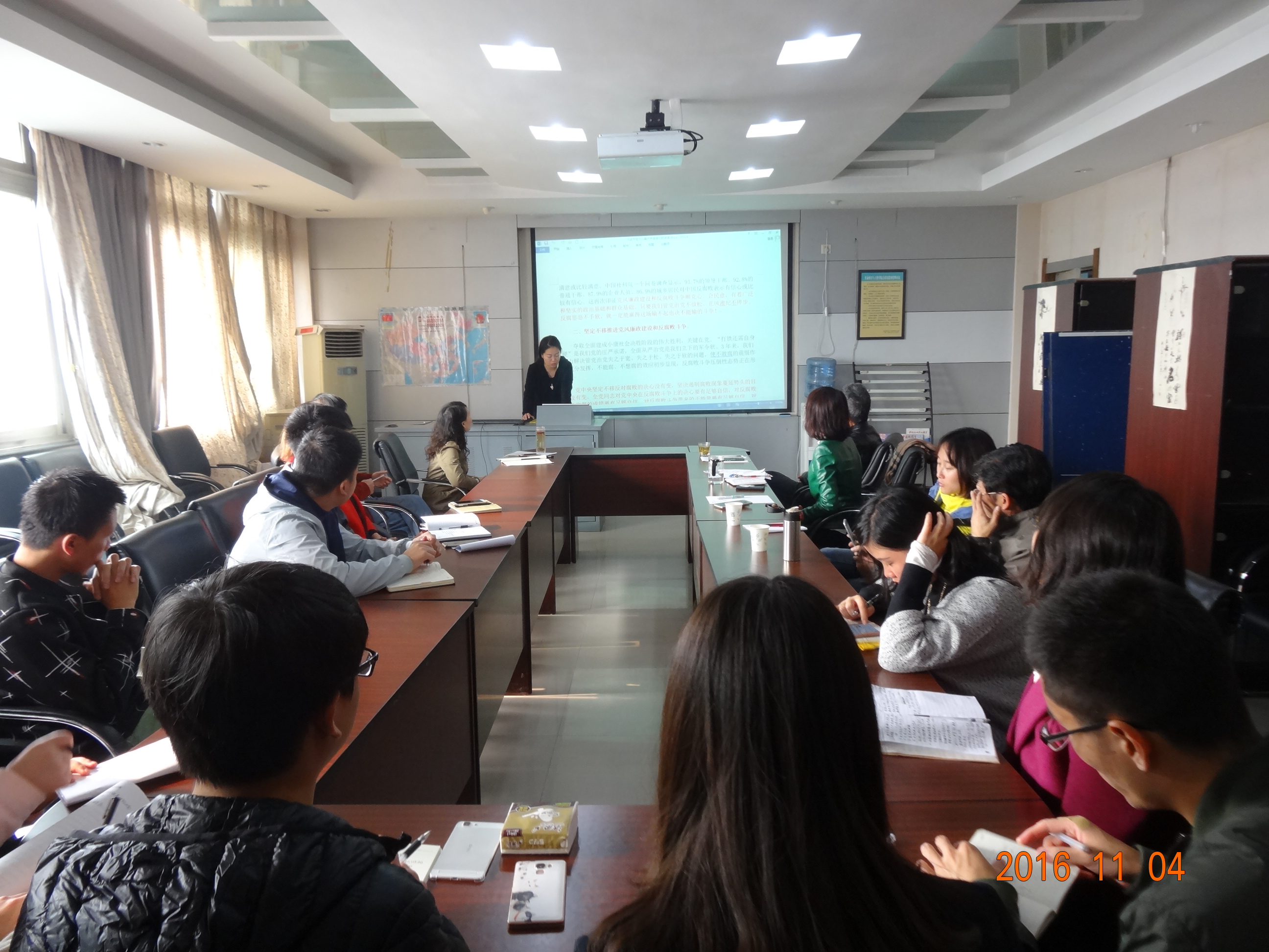 首先,党委委员贺妍总结了10月份学院各支部“两学一做”学习教育开展情况。 随后,党委书记就学院11月“两学一做“主要学习内容进行了安排部署,特别是就学习贯彻十八届六中全会精神及”学先进、讲奉献、有作为“专题内容进行了安排。