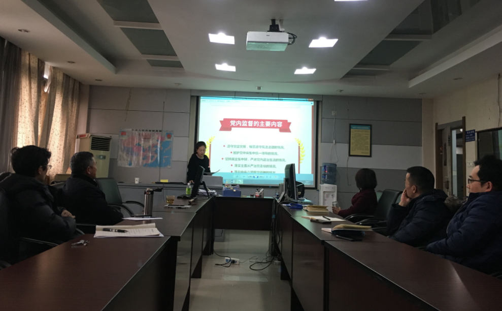 会议首先由罗妍妍副书记带领与会人员学习了《中国共产党党内监督条例》、《关于新形势下党内政治生活的若干准则》。学习采用图文解读的方式,向与会人员详细讲解了《条例》、《准则》的主要内容,传达了“党要管党、从严治党”、发展党内民主、加强党内监督、维护党的团结统一、保持党的先进性的重要精神,深化了党员干部锻炼党性、提高觉悟、自觉严肃按党内政治生活准则和党的各项规定办事的信念和责任。
