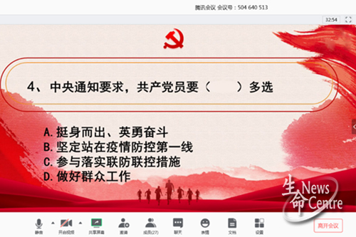 本科制药工程党支部主题党日活动“青春的我,信仰的光”在X6423顺利开展,会议内容为学习国务院新闻办公室6月7日发布的《抗击新冠肺炎疫情的中国行动》白皮书以及《中国共产党的九十年》摘录,感受党在1949年至1976年的历史性巨大成就。学习结束后,支部成员共同参与了新冠肺炎疫情防控知识答题竞赛。此次活动由向玉清同志主持,8名支部成员参加活动。