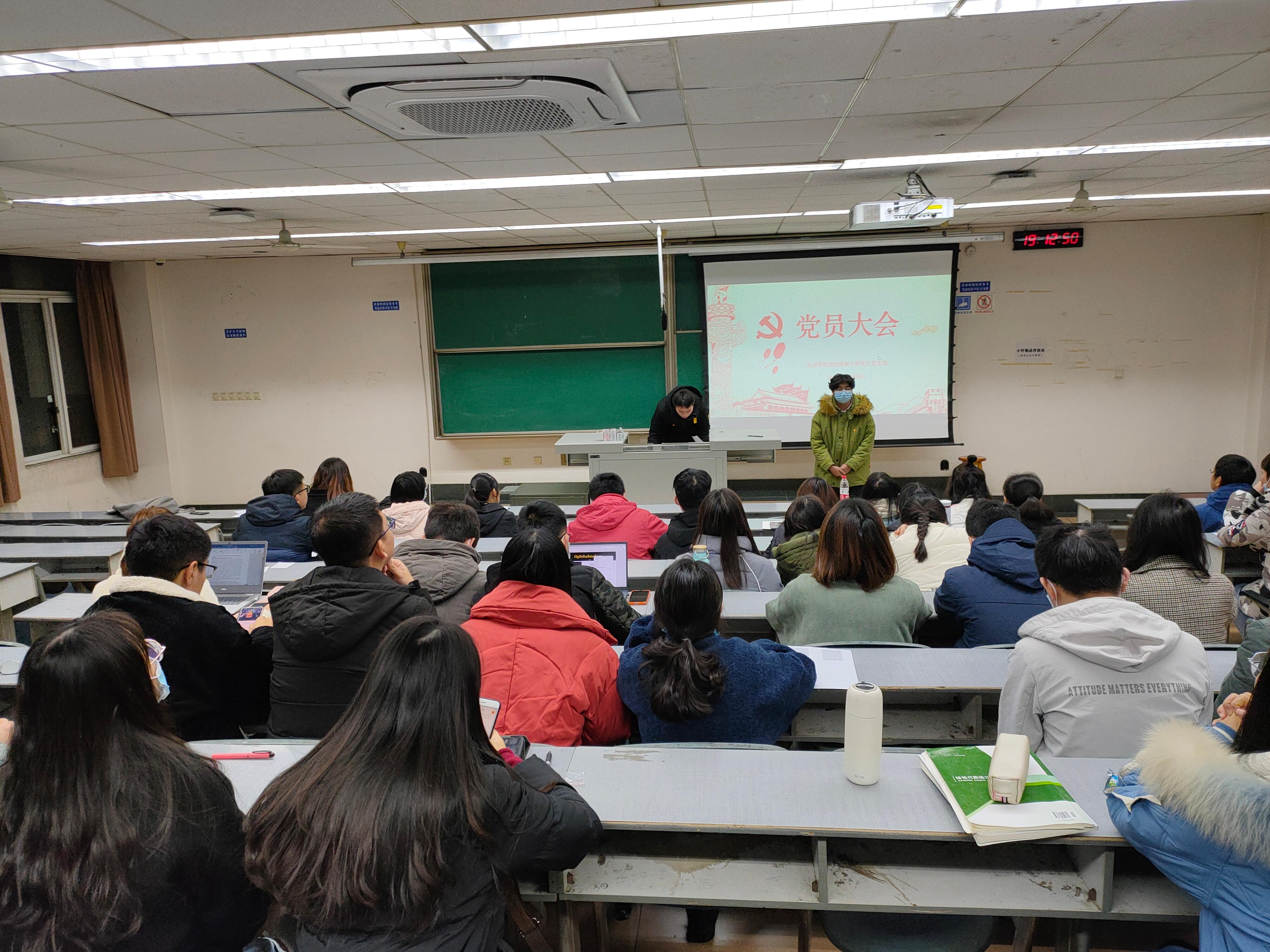 2020级硕士研究生党支部在九里校区四号楼4408教室召开预备党员转正支部大会,讨论并表决沈灵、胡夏桐、杨帆、汪锐及邓弘仙五名中共预备党员能否按期转为正式党员事宜。会议邀请了学院党委副书记赵钢锋参加,由支部副书记温鹏同志主持。