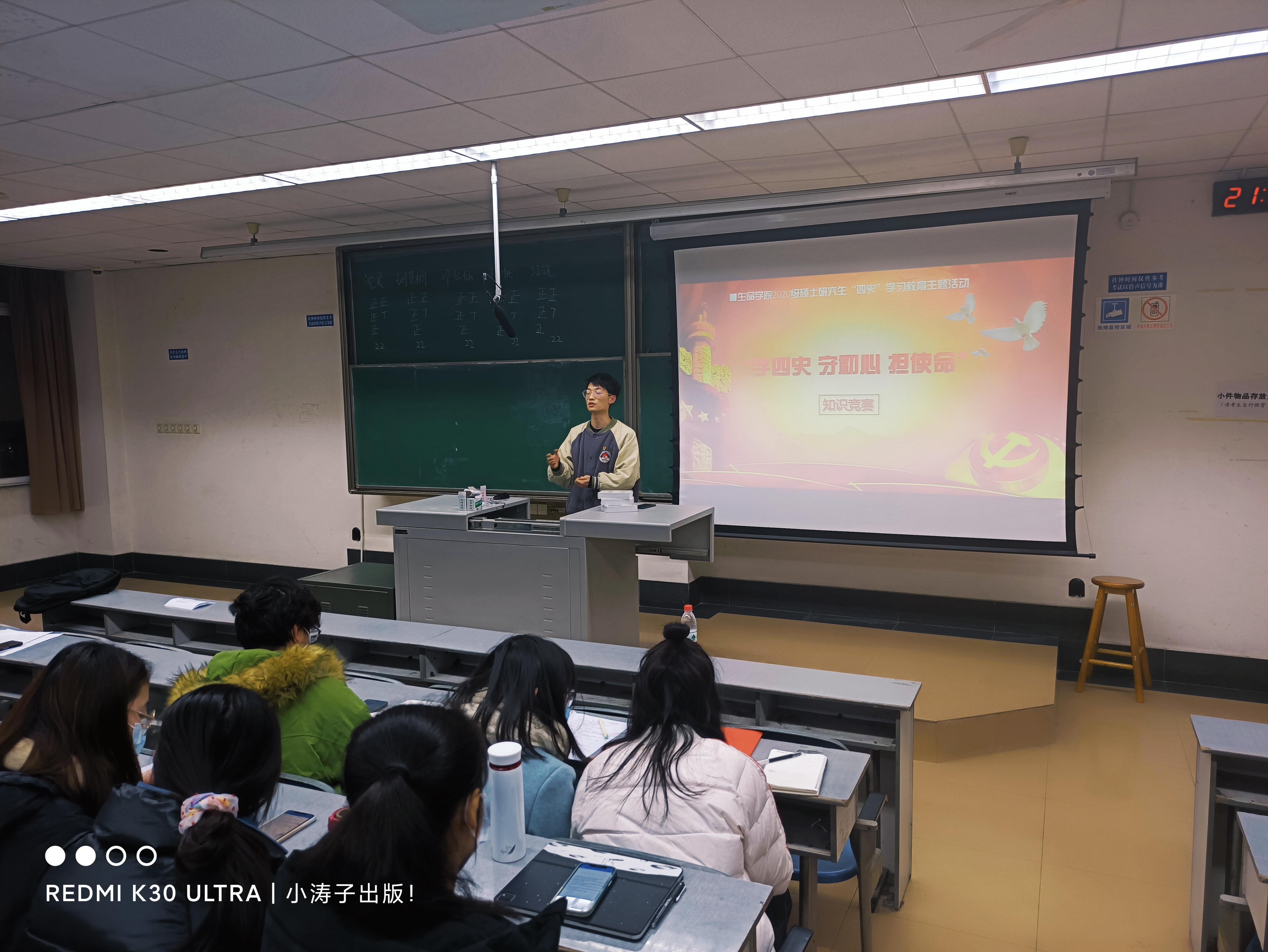 2020级硕士研究生党支部在九里校区4308教室开展了 “学四史 守初心 担使命”主题 “党史”知识竞赛。通过以赛促学,以学促用,促进学生党员学习中国共产党的百年奋斗历程,在广大学生党员中引起了热烈反响。