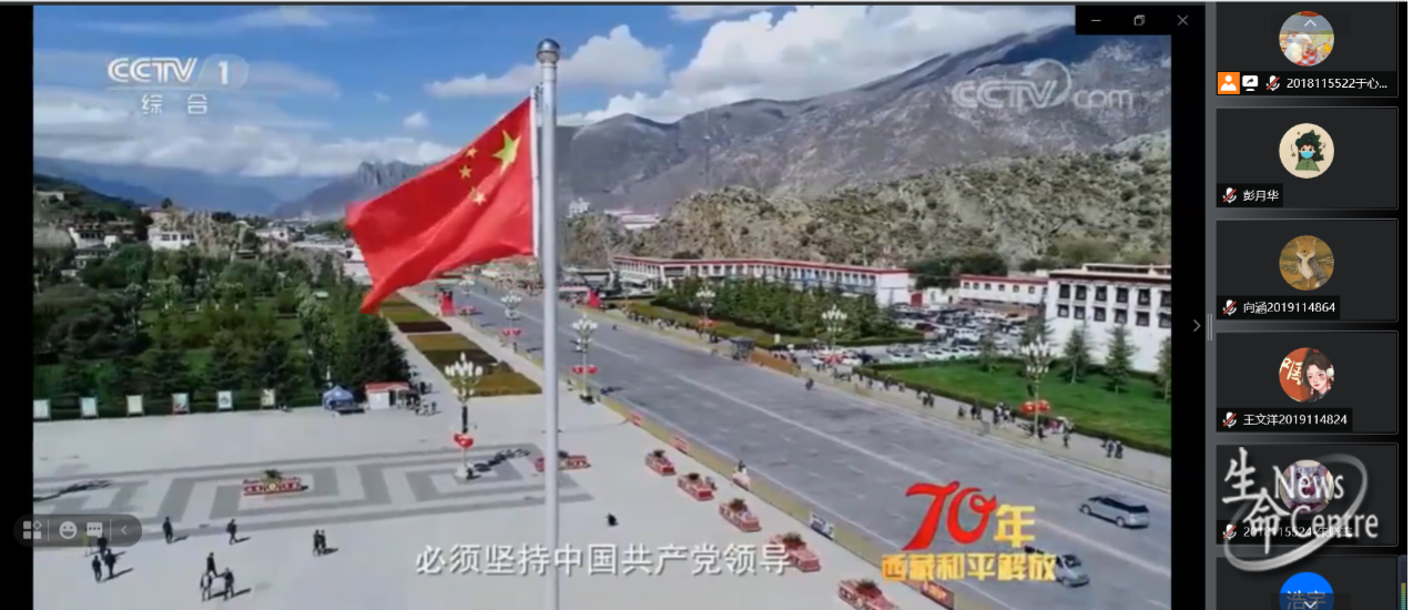 随后,于心怡同志带领大家观看了纪录片《一跃跨千年——西藏和平解放70年》,该片结合历史影像、典型故事,向我们生动讲述了西藏从和平解放以来发生的波澜壮阔的历史,呈现出一幅西藏“短短几十年、跨越上千年”的发展奇迹和各族群众幸福生活的美好画卷。以各个历史时期重大事件的亲历者、见证者、研究者等不同人群的亲身感受、故事和观察,反映70年来西藏发生波澜壮阔变化的深刻历史逻辑。以各领域从无到有、从有到强的发展历程,反映西藏人民70年来幸福指数是如何一步步提升的。