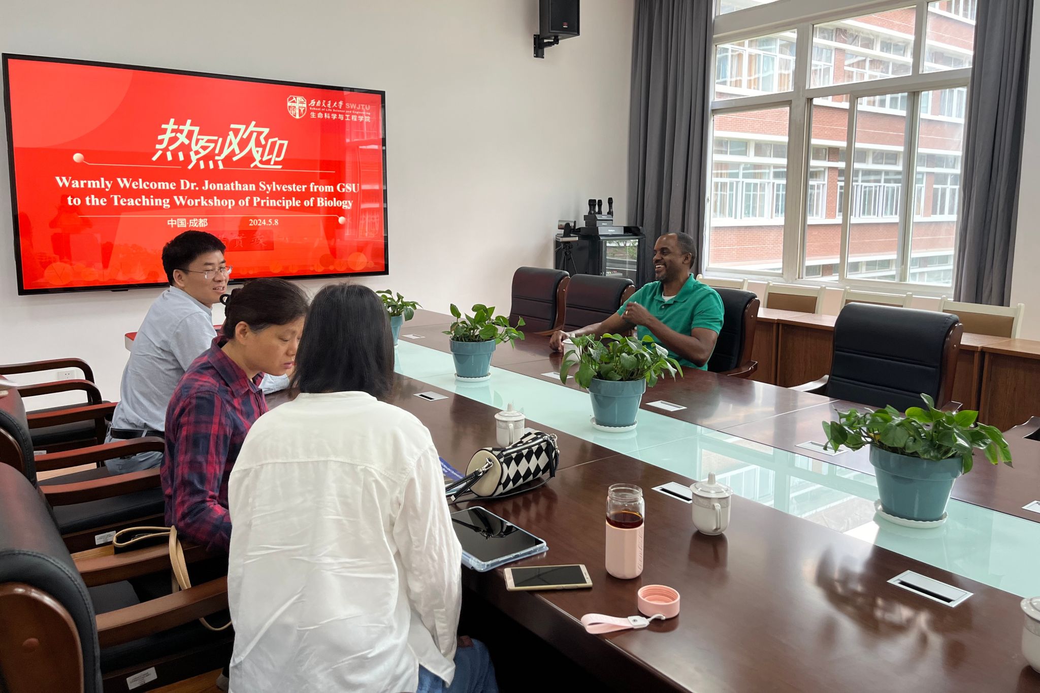 荣幸地邀请到了美国乔治亚州立大学(GSU)生物系的Jonathan Sylvester博士,在犀浦校区X2314会议室,举办了主题为“生物学原理教学研讨会”的专业交流活动。 本次研讨会聚焦于生物学原理课程教学的多个关键领域,旨在通过国际视角,提升教学内容的深度与广度。91视频