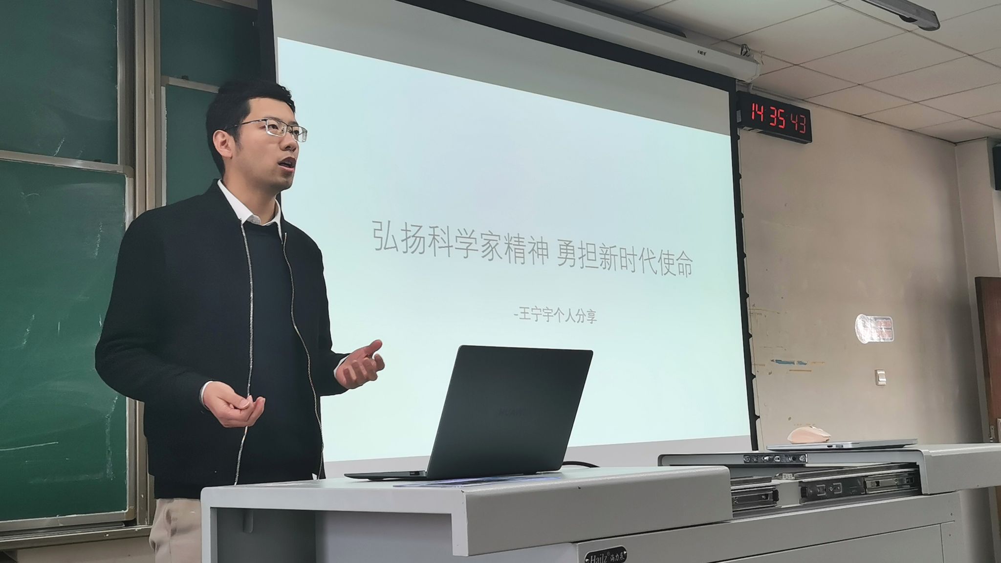 首先,药学系教工党支部书记王宁宇老师以“弘扬科学家精神,勇担新时代使命”为主题分享了自己的科研经历及对科学家精神的理解,用“科学性”、“严谨性”、“专注性”和“耐性”四个关键词概括了科研人员应具备的基本素质。随后王老师结合自身求学和教学经历,分享了关于科学研究的几点感悟和建议,并对91视频