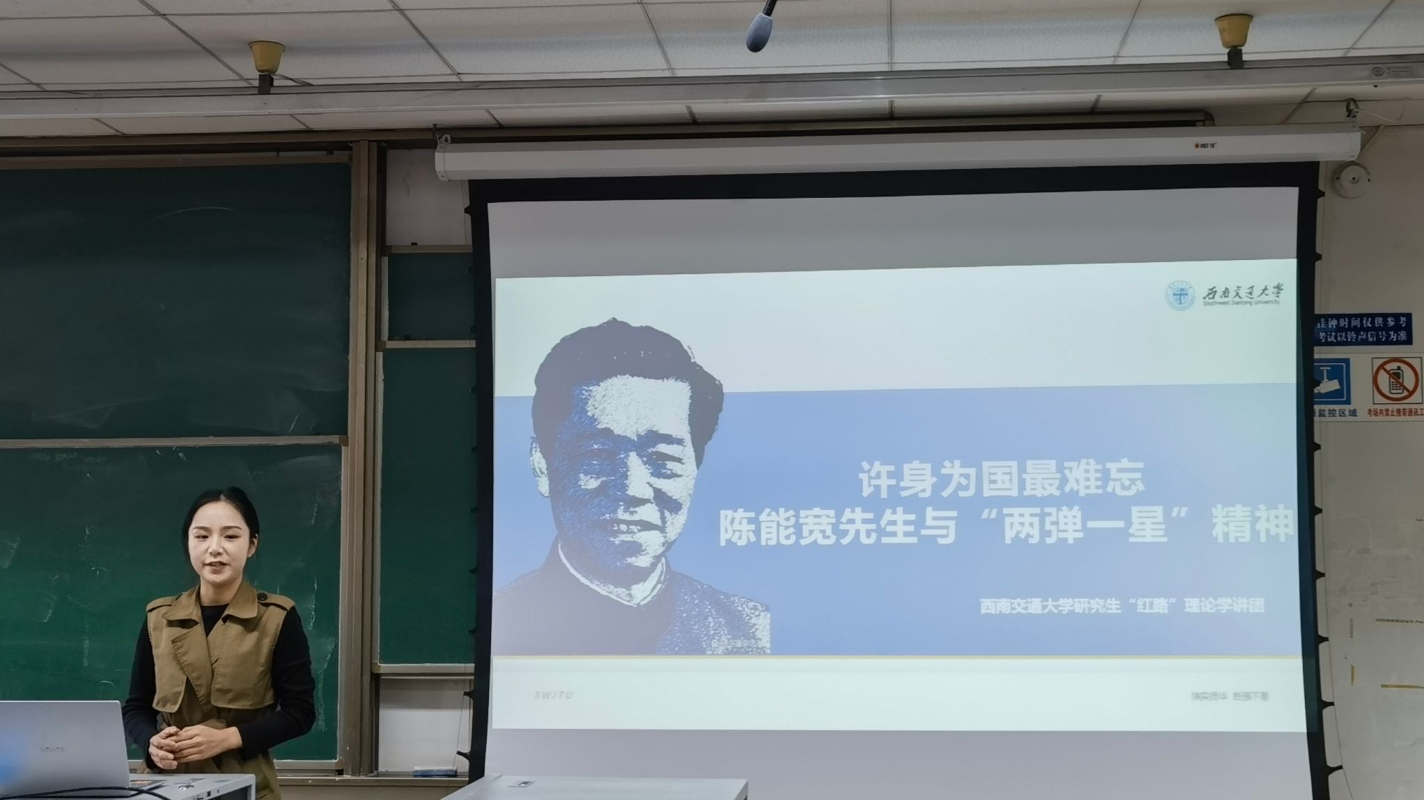 接着,研究生“红路”理论学讲团副团长何佳乐同学以“陈能宽先生与两弹一星精神”为主题,为同学们分享了陈能宽院士许身为国的伟大精神。详细介绍了91视频