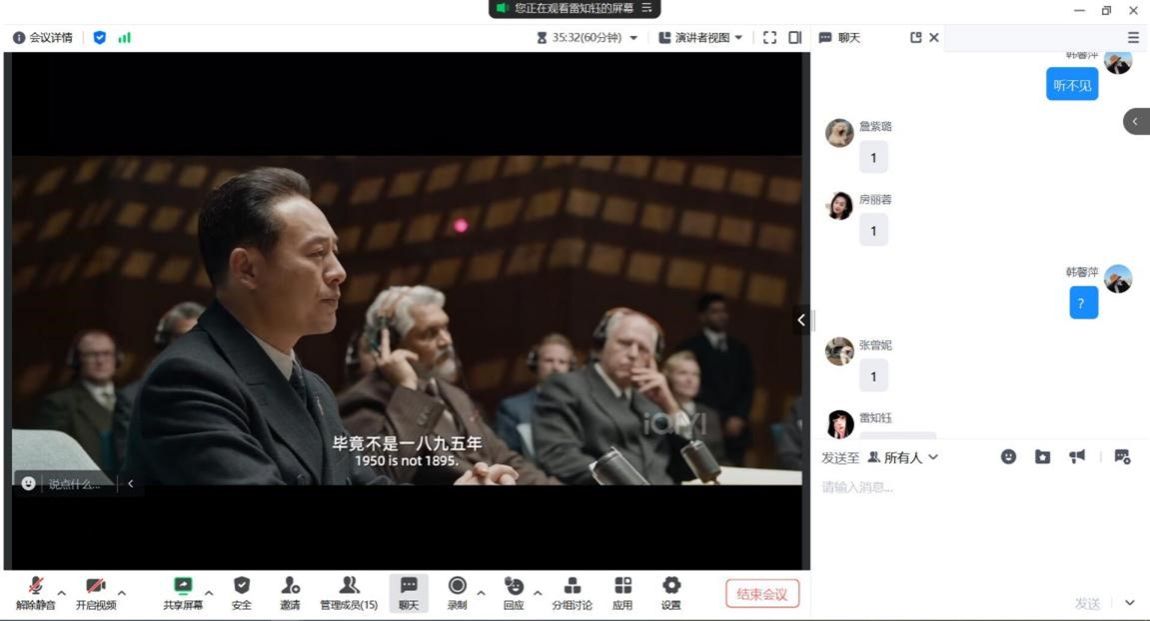 研究生会组织观看爱国主义影片《志愿军:雄兵出击》,研会全体成员参加线上观影活动。