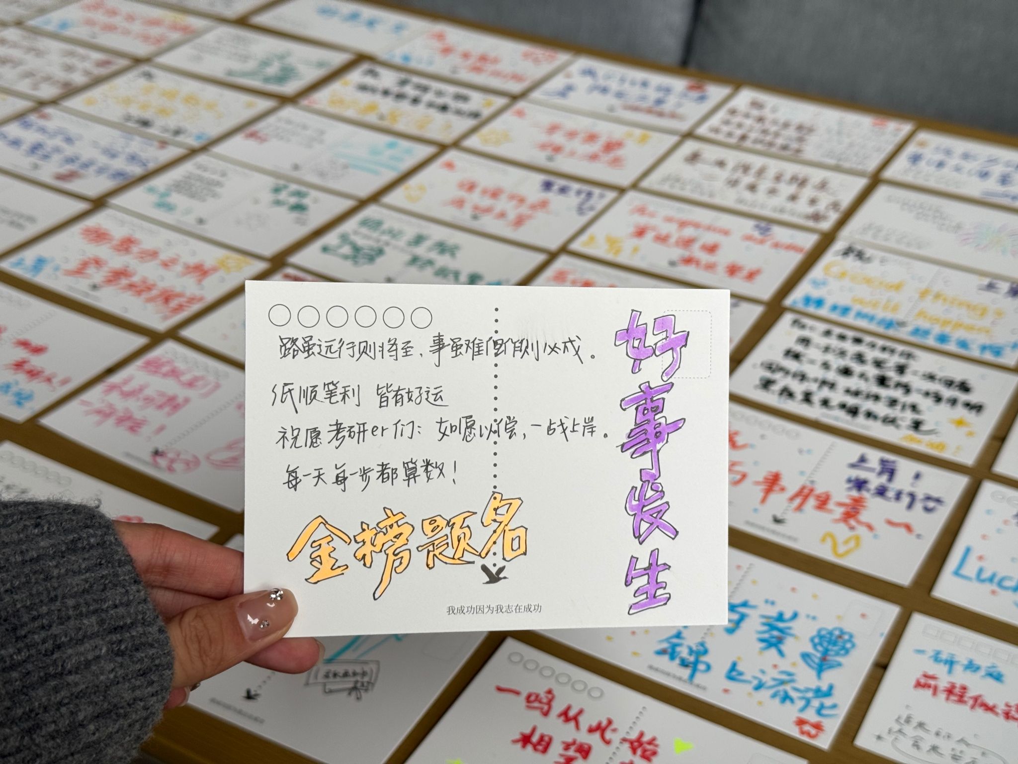 学院为考研学子精心准备的“考研上岸”暖心礼袋,礼袋里每一份礼物都寄托着学校对考研学子们的亲切关怀:学院师生亲手书写的明信片传达着对考研学子的殷殷祝福;橙子代表心想事成,一战“橙”硕;“乐事”薯条祝福学子们定能乐事发生;旺仔牛奶为考研学子们传递好运旺旺;暖身贴为在冬日里辛苦备战的学子们加油助力,鼓励着每位学子以昂扬的斗志和积极的心态投入到备考中。