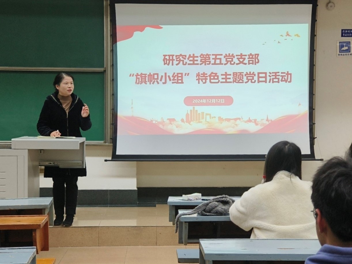 研究生第五党支部在九里校区4407B教室成功举办“旗帜小组”马克思主义理论学习活动。本次活动以“深入学习贯彻党的二十大精神及党的二十届三中全会精神”为主线,通过理论学习、成果分享和思想交流,引导研究生党员及群众深化对马克思主义理论的理解,凝聚奋进力量。