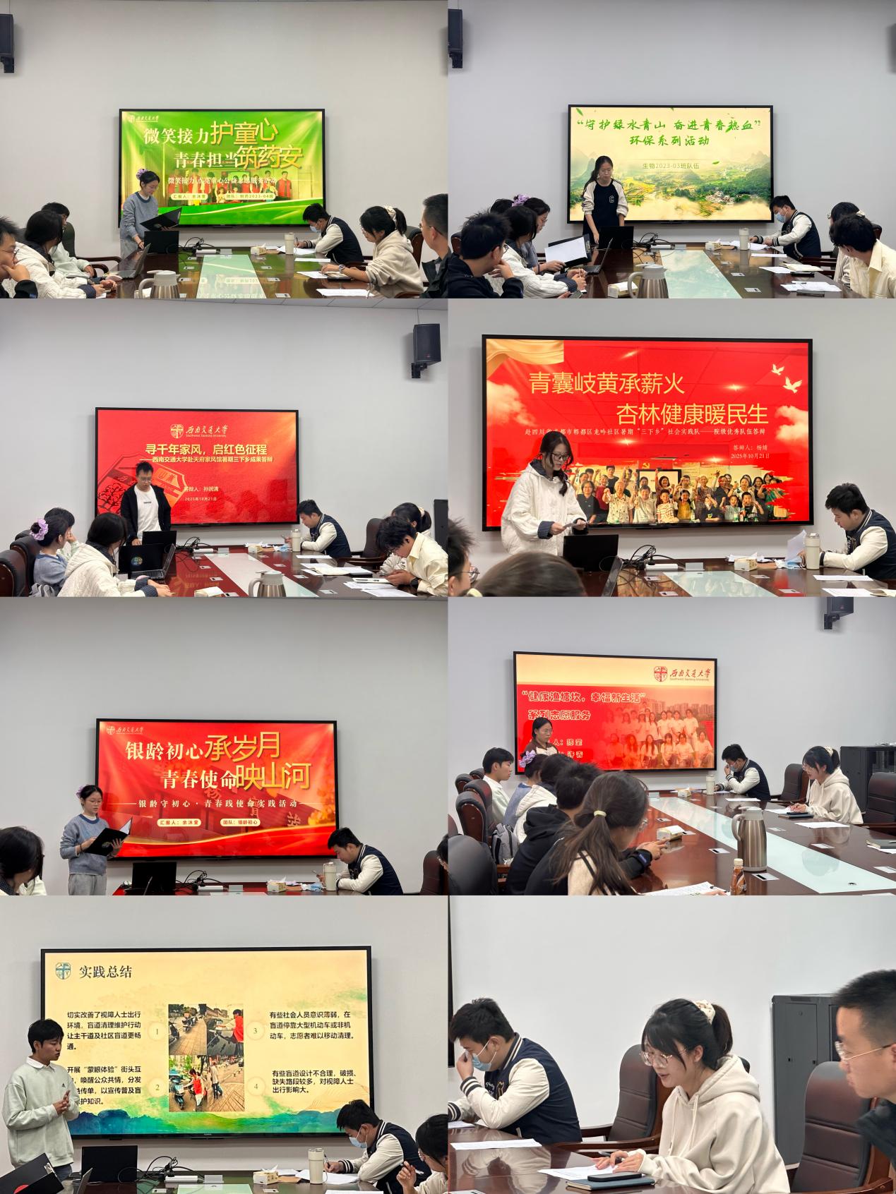 交通公益活动”进行院级评审,各队伍围绕活动策划、组织实施、社会效益、学生参与度及创新性等方面进行答辩展示。随后,与会委员对学院暑期“三下乡”社会实践活动成果进行院级评审,委员们结合各实践团队的总结材料,从实践过程、成果转化、社会反响及育人实效等维度进行评议。