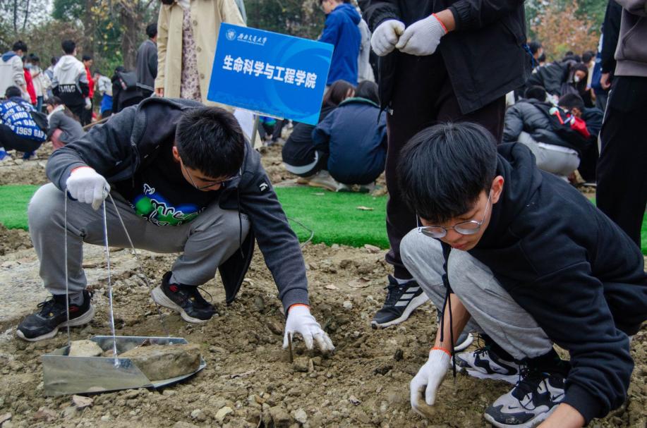 11月24日、29日下午, “开心农场”系列活动在犀浦校区东门种植基地草坪开展,学院2021级辅导员胡慧怡老师、田锦萍老师和2022级辅导员潘星宇老师两次带领60余名本科生学生代表参加此次活动。寒冷的天气也没阻挡同学们的劳动热情,同学们戴上手套,拿起锄头、铲子、簸箕带来到学校分配的专属农场进行翻整土地、捡石子、施肥等开垦活动,为下周的苗木种植做好准备。