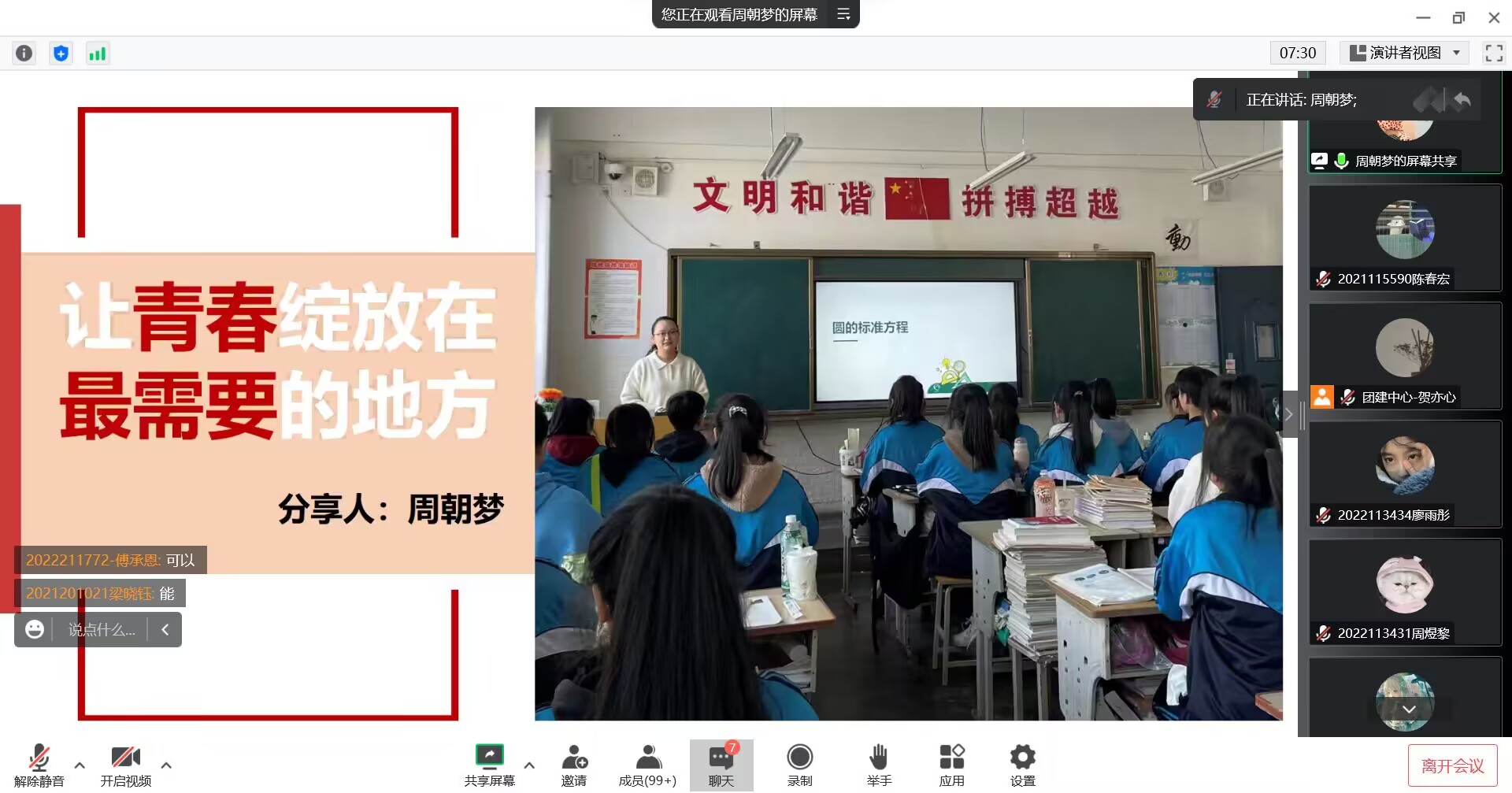 在12月9日晚上开展以“永远跟党走,奋进新征程”为主题的思政育人讲座。本次讲座在腾讯会议平台线上召开,讲座由周朝梦、郑玉龙、余丝雨、袁小宝组成的青年讲师团进行宣讲,由91视频