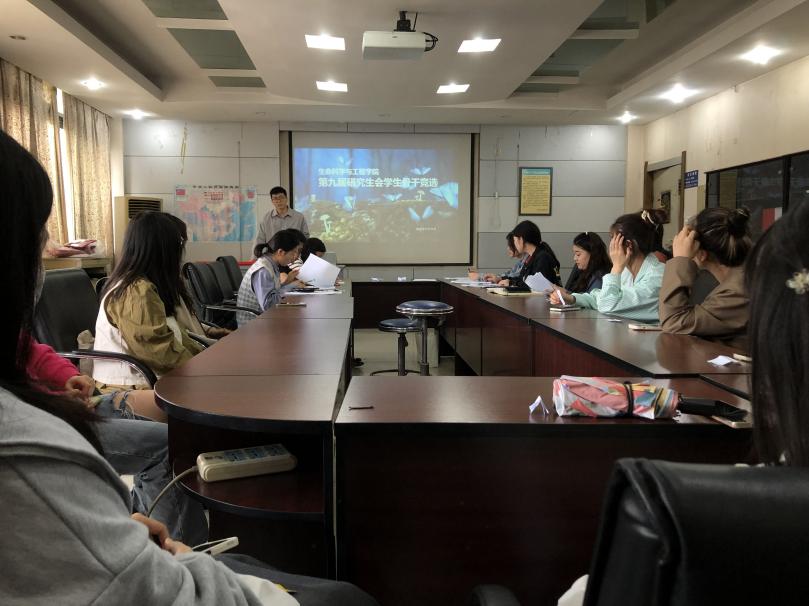 第九届研究生会学生骨干招新竞选大会于9月24日在九里校区三教3609会议室顺利进行。学院学生工作组副组长、团委书记高鹏老师,研究生辅导员杨颖增、兰卓、饶欢,学院第八届研究生会主席团全体成员出席本次会议。