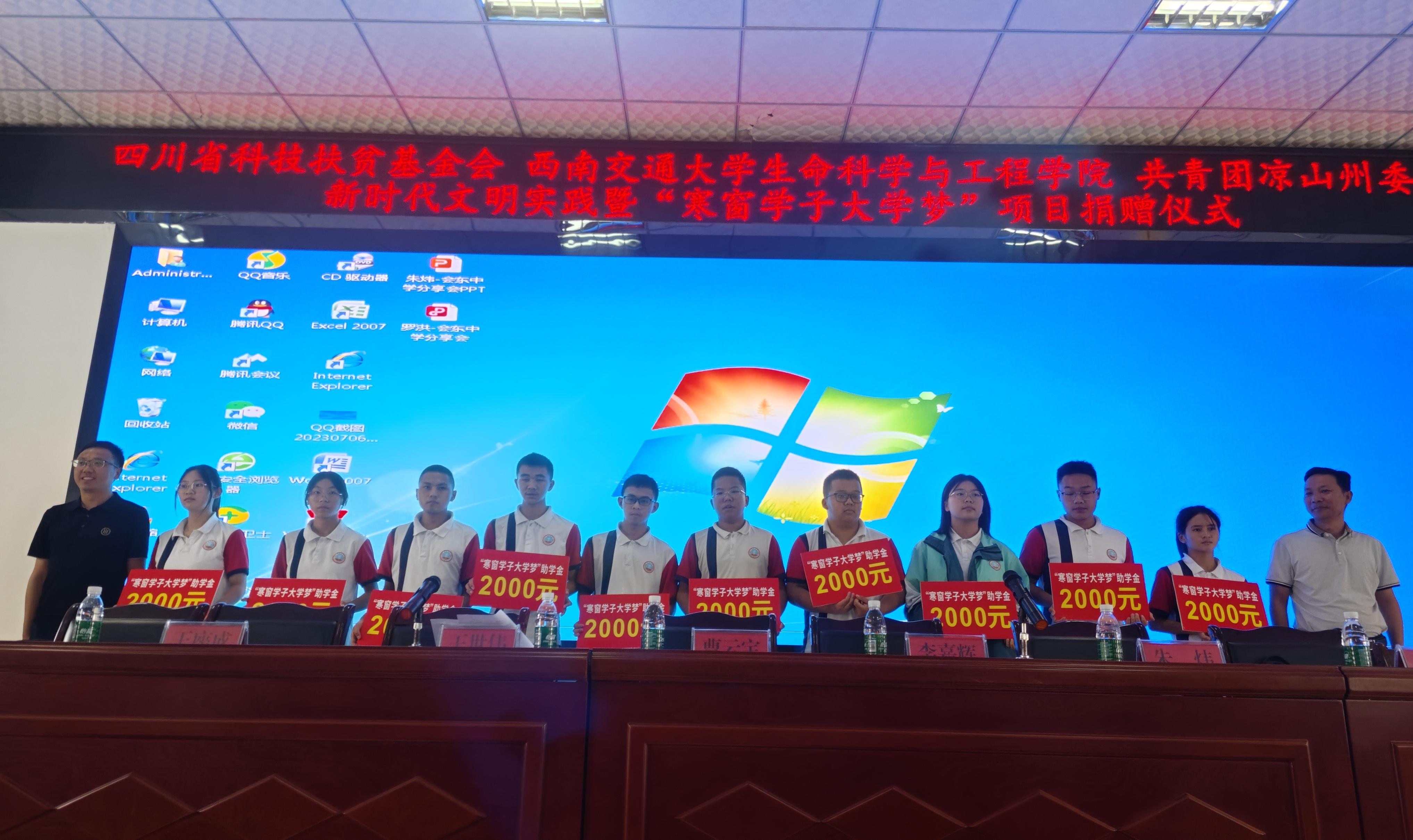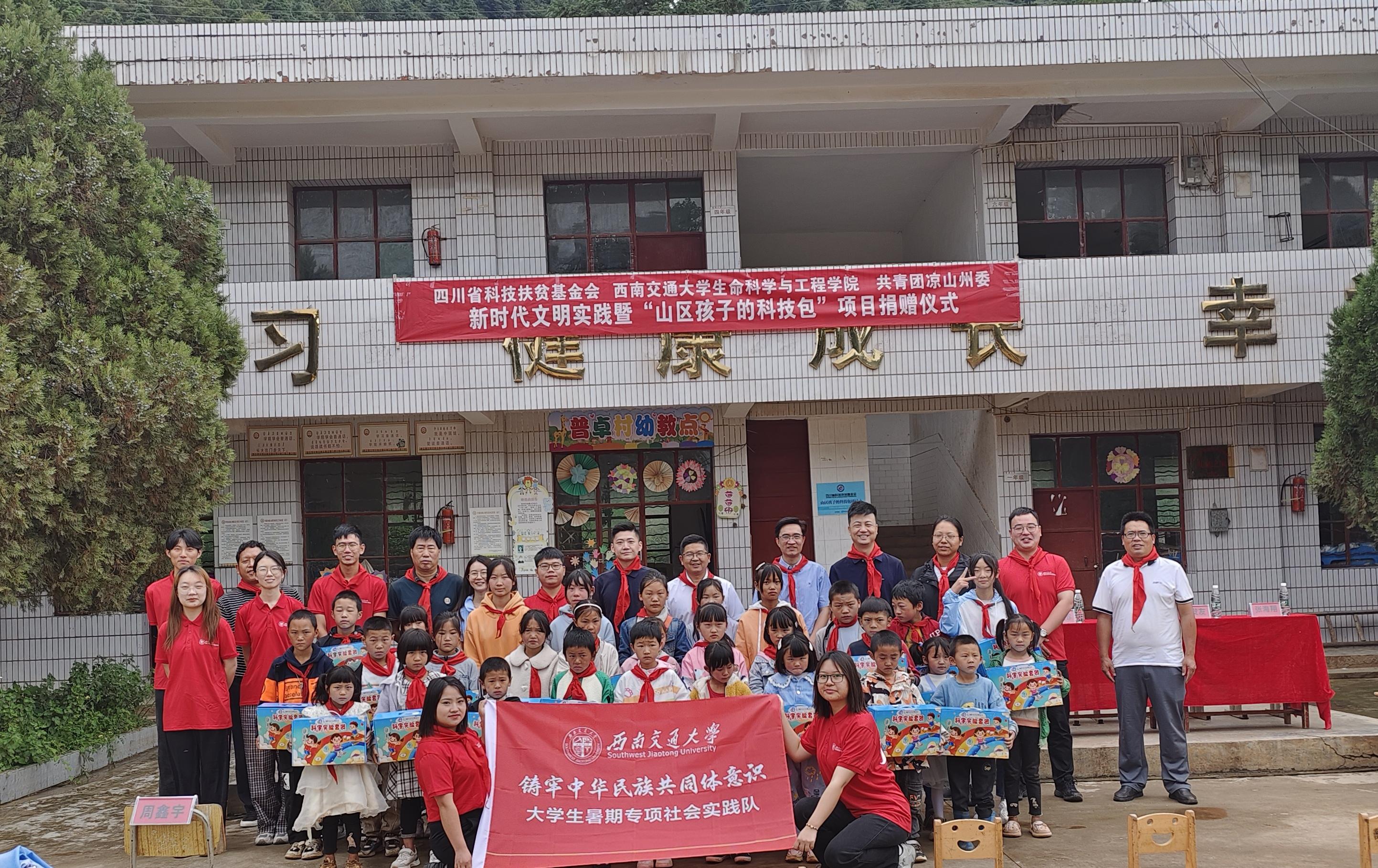 “优质生源基地”授牌仪式,在四川省科技扶贫基金会的支持下,为会东县中学、和文中学的50名高中生捐赠10万元的“寒门学子大学梦”项目助学金,为会东县堵格镇普塘小学、坪塘小学的200名幼教及小学生捐赠价值4万元的“山区孩子的科技包”。四川省科技扶贫基金会副理事长兼秘书长李嘉辉,西南交大91视频