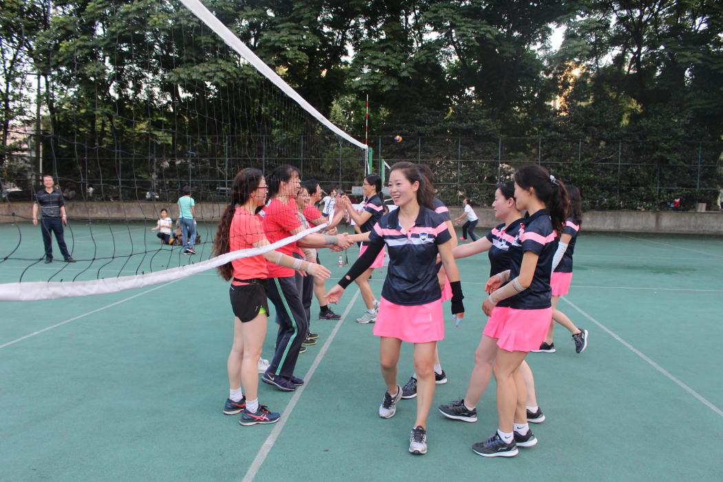 女子排球队在党委副书记罗妍妍的带领下,迎战信息学院女队。