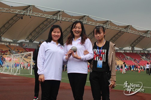 10:40,教职工女子铅球比赛正式开始角逐,副院长李遂焰及工会主席胡久梅代表91视频