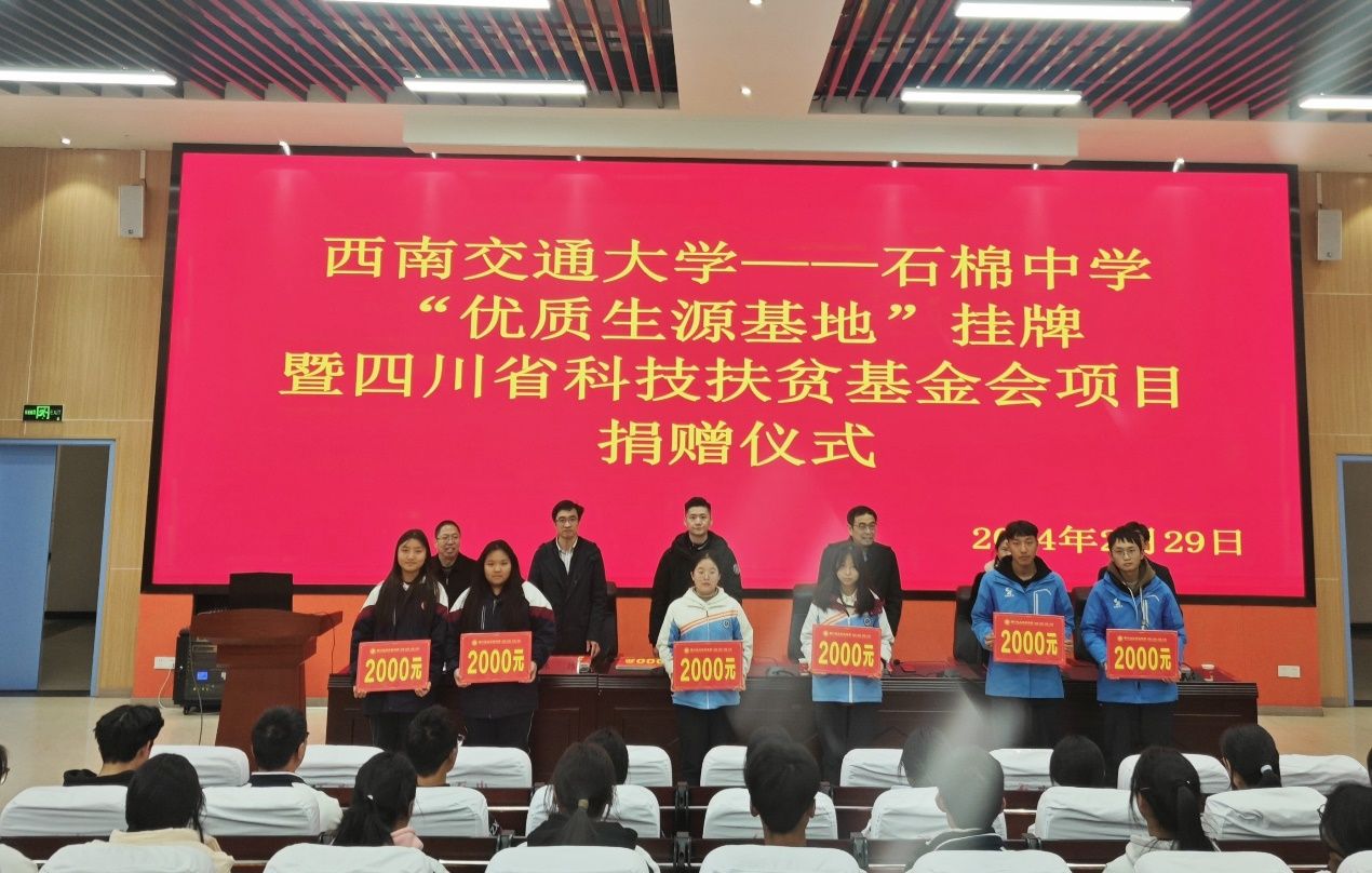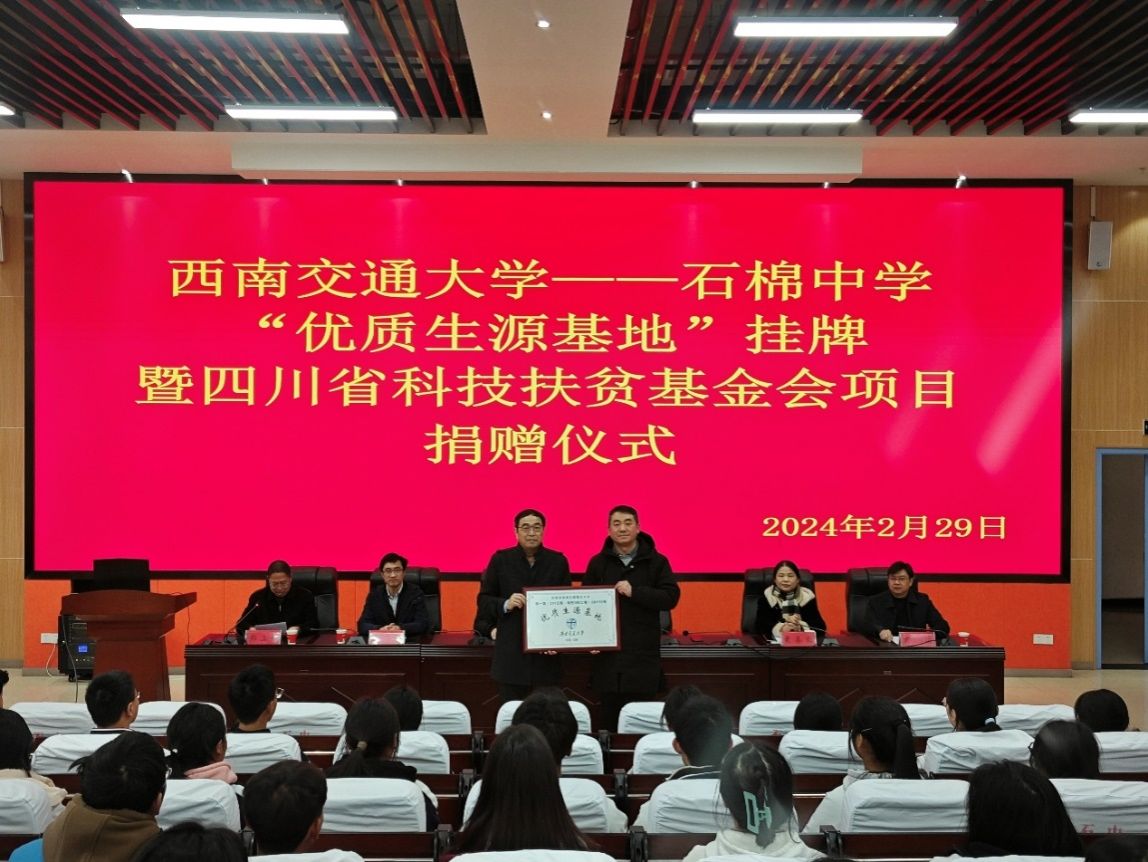 为石棉县中学授牌“优质生源基地”,四川省科技扶贫基金会为石棉中学的50名高中生捐赠10万元“寒门学子大学梦”项目助学金,黄新河副教授以《选择最重要》为题为石棉中学200余名高中学子开展专题报告,91视频