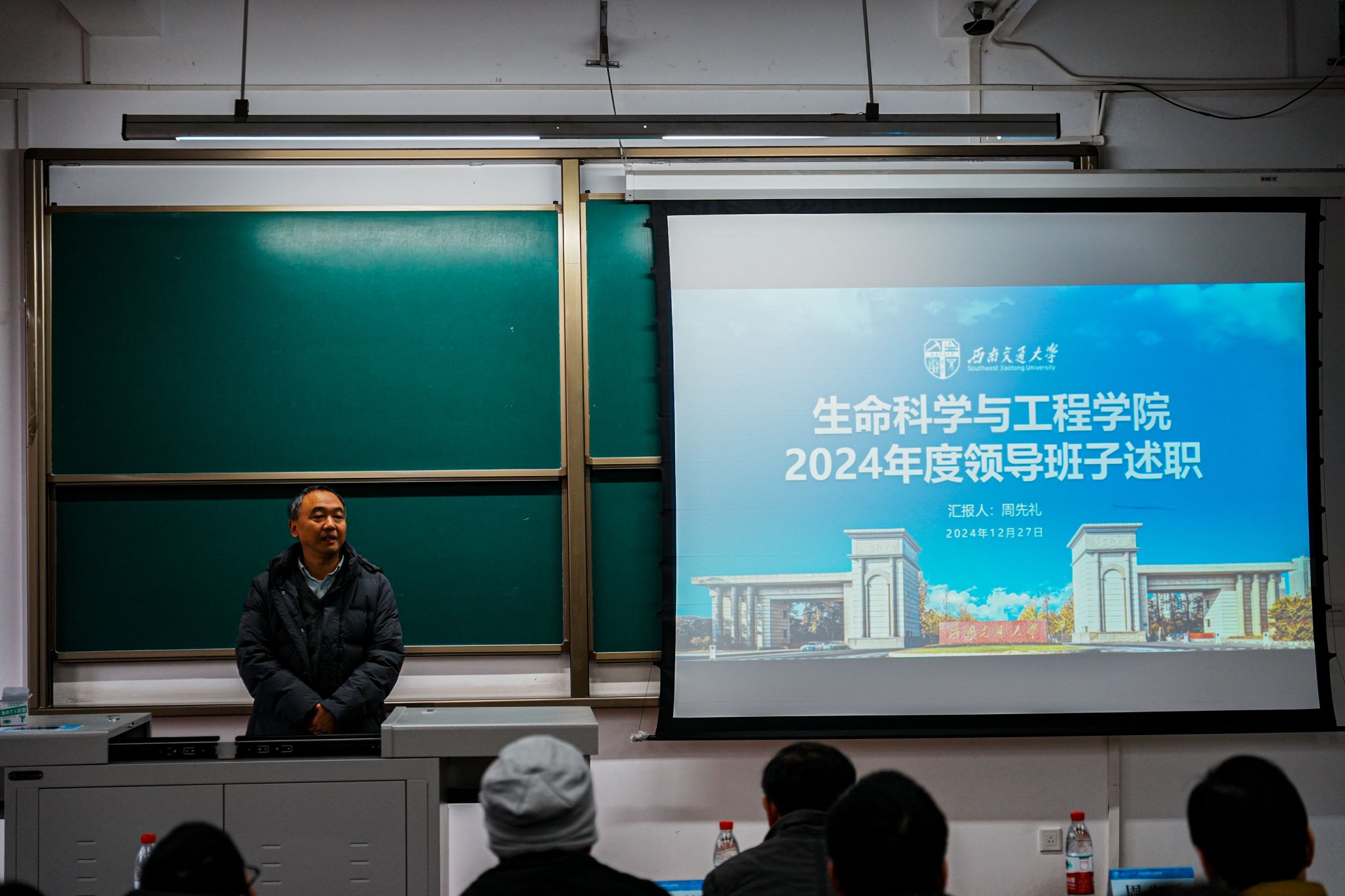周先礼院长代表学院领导班子进行2024年度工作述职。周院长全面总结了学院一年以来的工作内容和取得的主要成绩,同时强调,未来学院工作要持续推动“一融双高”,以博士点申报为龙头,实施人才强院核心战略、学科提升计划、专项奖励计划,凝练学科方向,营造“引育管用服”五力协同的人才生态环境,进一步强化有组织科研,不断推动学院高质量发展取得新成效。