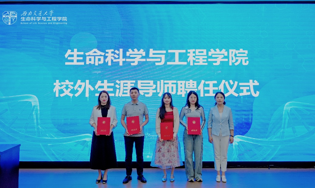 学院党委书记黄春蓉为李佩、魏国清、夏林、马仕英等四位校友颁发校外生涯导师聘书,期待与校友继续深化合作,完善学院"产学研创"协同育人体系,共同开拓生命科学领域创新发展新格局。