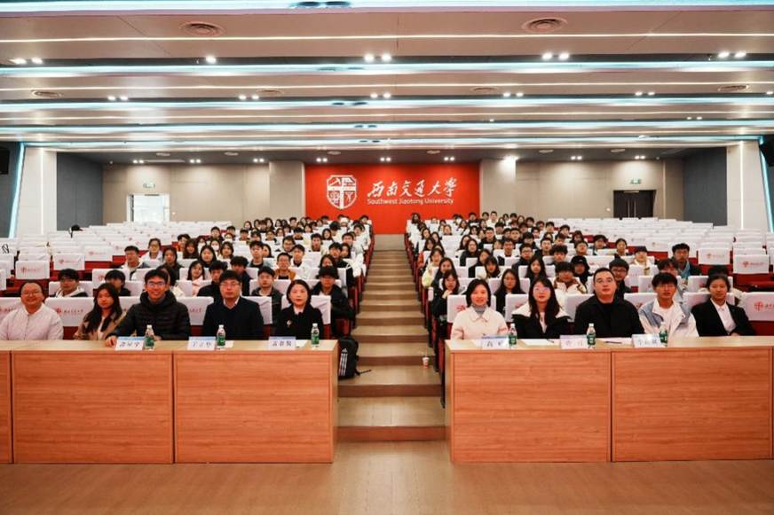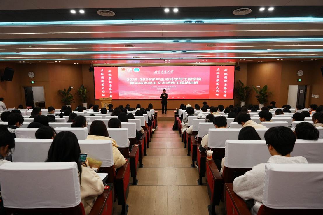 2025-2026学年青年马克思主义者培养工程开班式暨开班第一课在犀浦校区图书馆一号报告厅举行。学院党委书记黄春蓉出席并讲话,学院党委副书记、纪委书记高鹏、学院思政指导教师王立华、学院团委负责人及150余名青马工程学员参加本次活动。