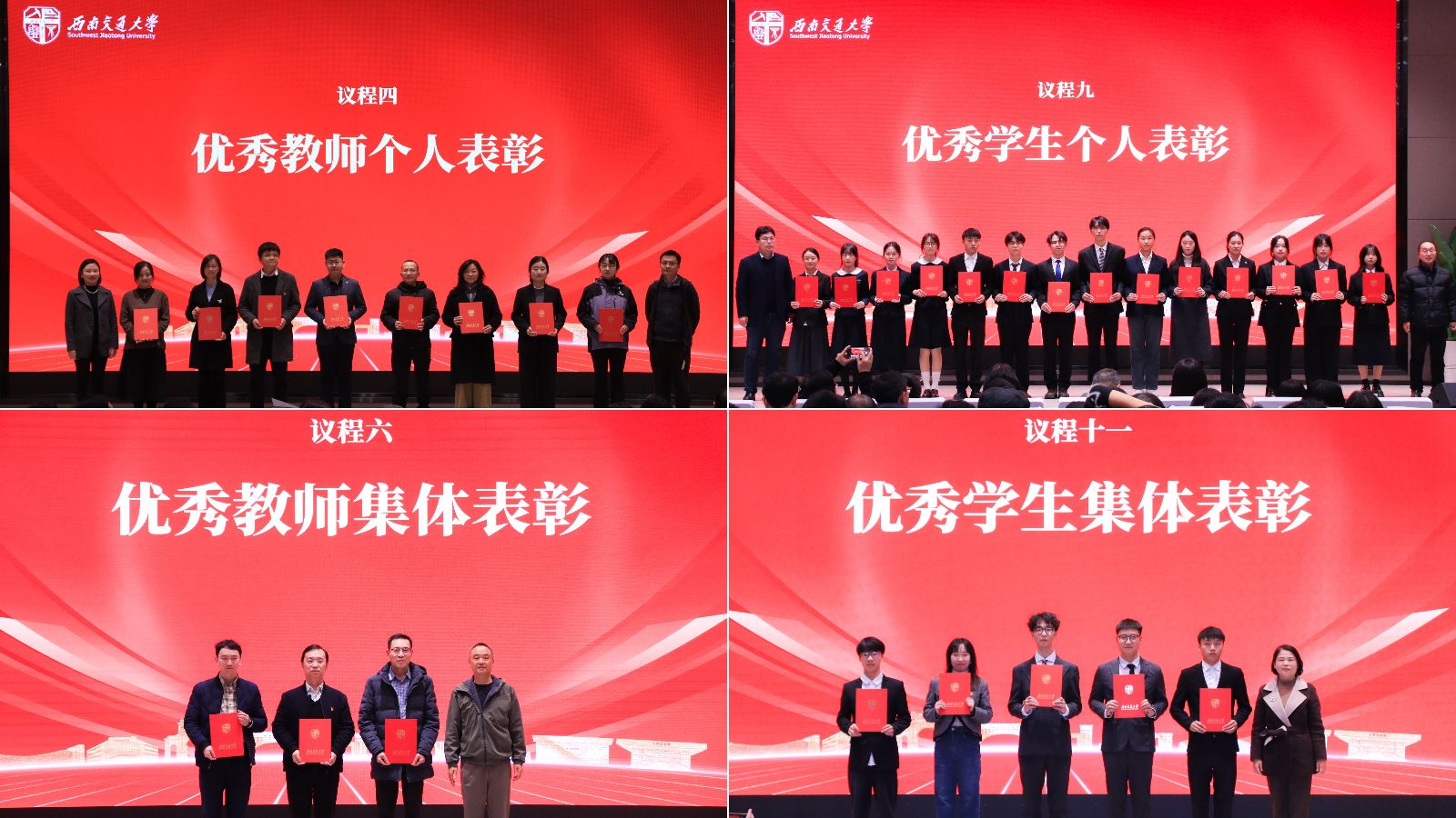 学院对师生年度优秀集体与先进个人进行了表彰。学院党政领导与“融通共育”专项指导老师分别为获奖教师、学生、班集体、团支部及科研团队等颁发荣誉证书,充分肯定了获奖师生与集体在教书育人、科研创新、学风建设和全面发展等方面的突出表现,生动彰显了91视频