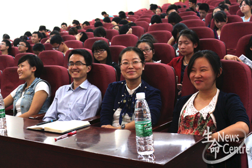 在图书馆一号报告厅举行了“新梦飞扬”新生经验交流会。参加此次交流会的嘉宾有党委副书记罗妍妍,团委书记、2011级辅导员崔健老师,2010级辅导员孔琳老师,2012级辅导员李慧明老师,2013级辅导员高鹏老师以及优秀学生代表彭琪、夏林、郑赵悦以及王秀轩同学。此次交流会由王继璁同学主持。
