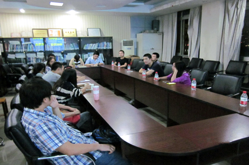 会议内容主要包括经验介绍和自由交流两个环节。会议伊始,前任研会主席刘凡向研大家讲述责任和纪律的重要性。他强调研会干部并非一个个体,而是一个团体,对研会干部而言,不仅需要良好的人际关系,更需要每个人的严以律己,只有这样才能更好地建设整个团体。刘凡还把自己的管理经验以及如何处理工作与学术研究之间的关系与大家分享,他的讲话让会议一开始就进入了良好的气氛。