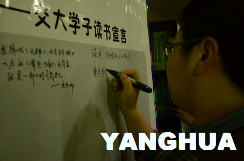 之后进行的第三环节“问题抢答”和第四环节“书书交换”中,现场的气氛顿时活跃起来,同学们争相抢答问题赢取礼品,并通过随机抽签的方式与其它读者交换阅读各自推荐的书籍。活动的最后一个环节“交大研究生读书宣言”,参与活动的同学们通过在签名墙上写下读书的感悟与收获,在世界读书日这天为自己与书的故事做了一个最完美的诠释。