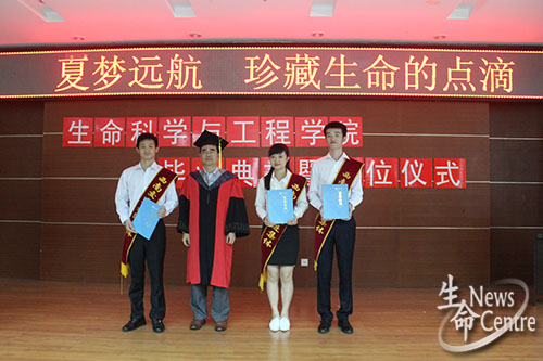 ,感恩交大母校。作为教师代表,2010级生物信息学2班班导师李琳副教授送上对毕业生们的祝福,希望大家毕业后能够成为各行各业的千里马,驰骋在祖国的大江南北,为学院、学校争光。现任辉瑞制药有公司零售西南大区成都地区经理、优秀校友代表06级制药工程汤惠上台发言,鼓励大家在以后的生活中更要坚持自己的梦想,让自己变得更加优秀。