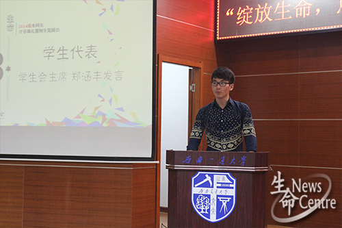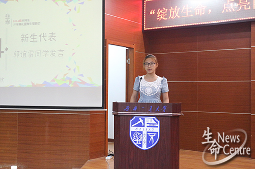 会议首先由院长周先礼致辞,他先对各位新生的到来表示热烈欢迎,并表达了自己对新生的期许。他提出,每个大学生都应当为自己的行为负责,学会自立,学会自主学习,踏踏实实做人,扎扎实实做事,能够秉承校训精神。最后,院长祝愿同学们能够学习进步,身体健康,做一个有梦想的交大人。随后,教师代表罗红霞,学生代表郑涵丰,新生代表郭谊雪依次发言,都不约而同的表达了一种想法,希望各位新生都能有自己的规划,珍惜大学时光,努力学习,学会为人处世,为自己的将来做好铺垫,为实现自己的目标而努力进取。