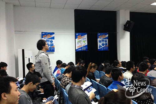 19:00招聘会在电子科技大学清水河校区的活动中心201正式开始。首先由华大基因执行副院长、人力资源经理张二春对华大基因做了简单的介绍。张二春经理从培训发展、薪酬、员工福利、校园招聘会流程、招聘岗位、工作地点、联系方式等方面详细介绍了华大基因员工的生活及工作情况。重点强调了华大基因良好的发展前景,以及华大基因对员工身体健康情况的特别关注。同时,张经理提出了一些有关华大基因的问题,同学们都积极踊跃,特别是91视频