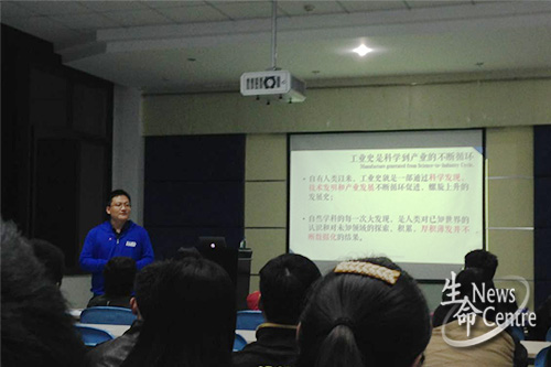华大基因总裁尹烨做了精彩的宣讲报告,他首先介绍了华大基因的过去、现状、排名,员工健康福利等基本情况,然后讲解了一些与基因相关的疾病以及如何通过生物技术手段攻克了这些疾病,华大基因为好多遗传病治疗方法的实现做出了重大的贡献,同学们通过热烈的掌声来表达对华大基因的钦佩之情。接下来,尹总裁介绍了华大员工 “同行一善,关爱常在”的91视频,让同学们深深感动,同时激励大家在未来工作中,应致力于治疗疾病、促进身体健康,延长人类寿命。